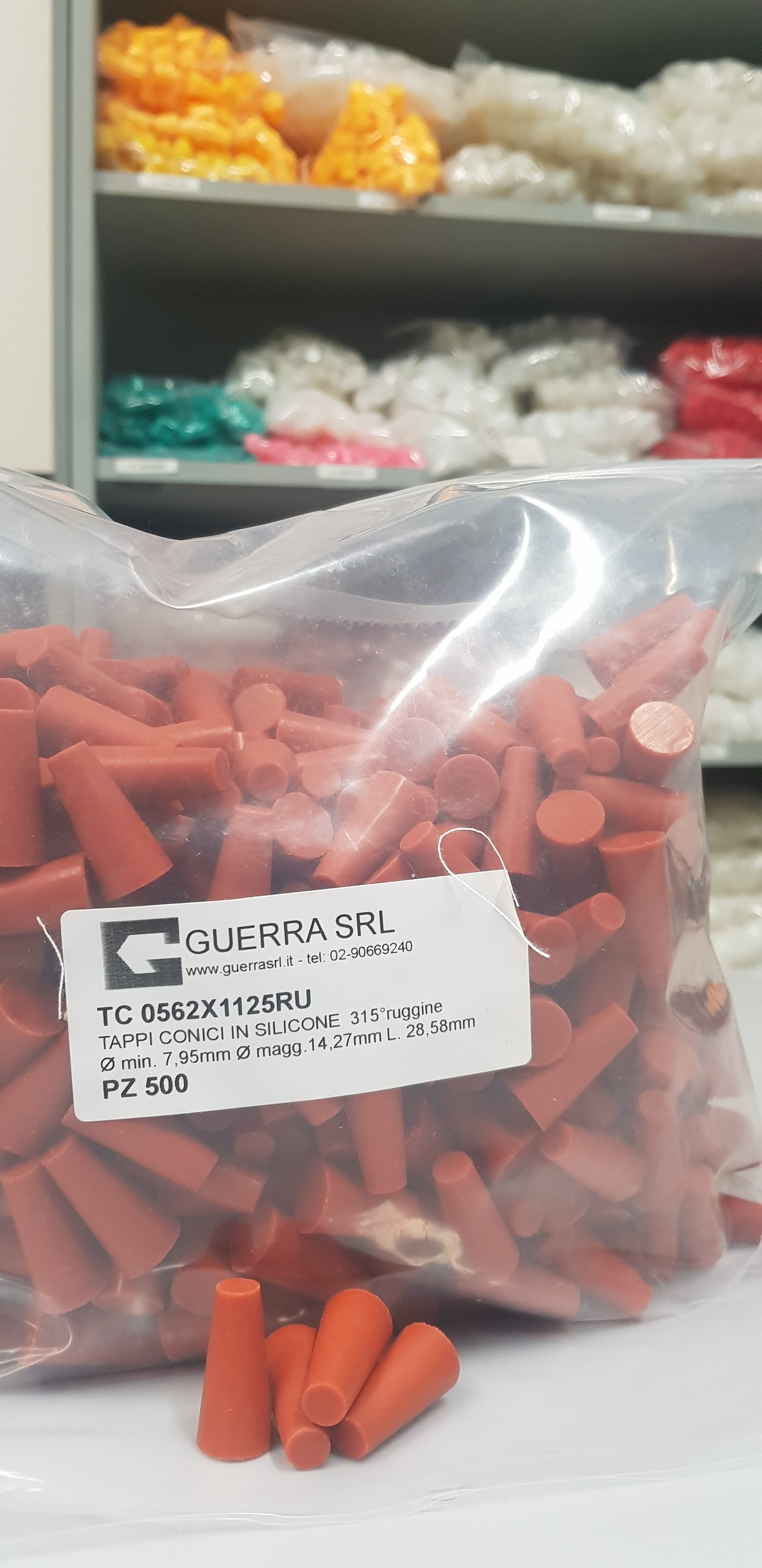 Tappi conici in silicone resistenti alle alte temperature fino a 315°, adatti alla protezione di particolari da verniciare. I tappi conici sono riutilizzabili