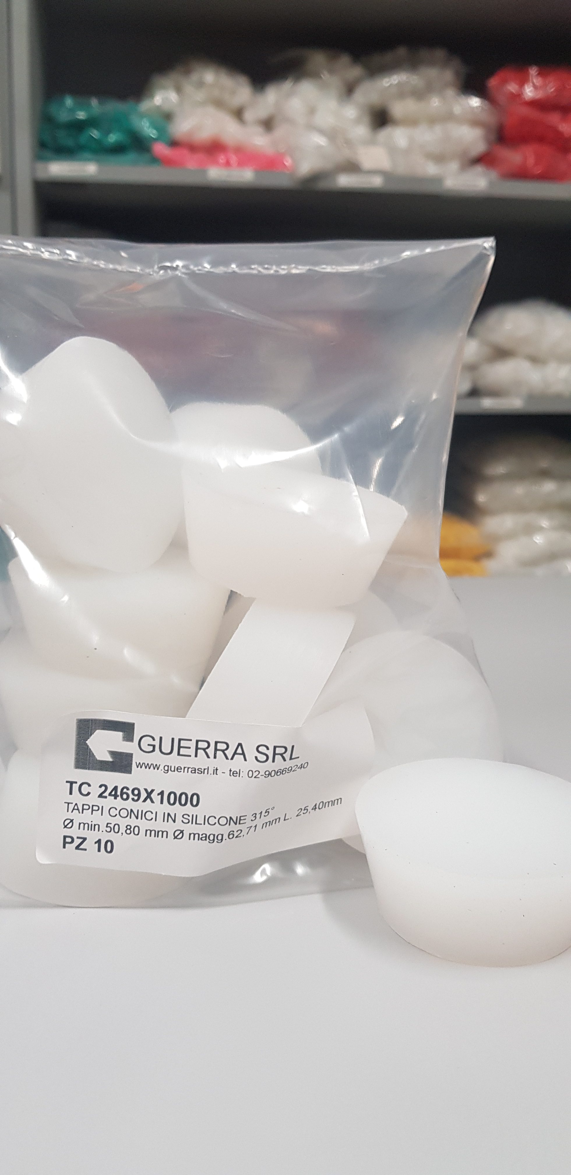 Tappi conici in silicone resistenti alle alte temperature fino a 315°, adatti alla protezione di particolari da verniciare. I tappi conici sono riutilizzabili